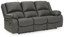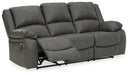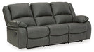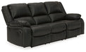 Sleek and streamlined, this reclining sofa draws out your leisure time with its bustle back construction and thickly cushioned armrests. The super soft faux leather gets a high-end tweak with jumbo contrast stitching so you don’t have to sacrifice style for comfort. Sink into the comfortably supportive cushions and stretch your evening as long as you can.