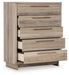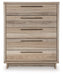 Modern meets neutral and sophisticated in this chest of drawers. Its natural finish, subtle replicated wood grain and clean lines wake up your bedr...