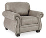Seamlessly merging classic elements with modern trends, this chair invites you to bring home the best of then and now. Wrapped in a fabulous steel gray upholstery with sumptuous suede-like feel, this easy-elegant chair is dressed to impress with updated roll arm styling and tailored touches including nailhead trim and window pane stitching. What you can’t see is every bit as impressive. A reversible seat cushion crafted with our highest quality coils provides a bit of bounce and plenty of comfort and support.