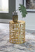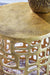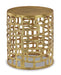 Alluring detail and artful dimension are the highlights of this dazzling end table. Its geometric pattern design boasts an open, airy feel with plenty of depth. The aluminum frame is finished in a rich antiqued goldtone, for a touch of glamour sure to be the highlight of your decor.