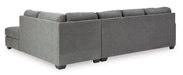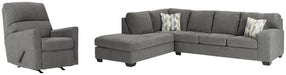 Searching for just the right blend of comfy and contemporary? Relax to your heart’s content on this posh and plush 2-piece sectional with recliner. Elements like wide track arms and box cushions lend this sectional the clean-lined look you love. Rest assured, a generously scaled rocker recliner in charcoal gray provides the perfect place to sit back and kick up your heels in style.