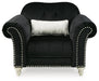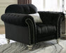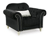 View full detailsTalk about Academy Award winning style. Inspired by Hollywood Regency design, the stunning black upholstered Harriotte sofa, loveseat and chair pac...