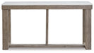 This sofa table is simple in design but big on style. Finished with a trend-right grayish brown wood tone, its bold, blocky profile and natural marble top are timeless classic choices that is ideal for pairing with an ottoman underneath to pull extra seating into the room or remaining clean and sleek on its own. Adding to its beauty, the marble top's color variations, fissures, mineral deposits and veining are naturally formed and are not defects.