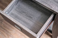 This table brings a visually pleasing touch of style and shape. A smooth gray finish matches well with silver drawer pulls and the swooping curled legs to give this set a contemporary feel. Storage drawers add a touch of utility to this piece.