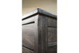 - Eight-step finish with a warm gray stain that provides depth and clarity to the natural wood grain.