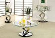 Add a modern artistic air to your living space with this living room tables set, showcasing tempered glass table tops supported by unique twisting pedestals.