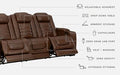 With its fashion-forward sense of style, this power reclining sofa has you covered with high-tech advancements and down-home comfort. combination leather and faux leather upholstery keeps luxury comfortably within budget. Love being pampered? With the touch of a button, experience the pure bliss of an air massage system (with three settings), or chill out with the heated seat element. Distinctive elements of this power recliner include contemporary waterfall tufting that beautifully goes with the flow and a zero-gravity mechanism further raising the ottoman for better blood flow.