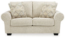 Blending classic elements like sumptuous flared roll arms with tailored box cushions and tapered black feet for up-to-date appeal, this loveseat exudes that transitional aesthetic that looks and feels right at home. Offering plenty of room for everyone to make themselves comfortable, this ample loveseat is wrapped in a soft, chunky weave fabric loaded in texture. Light and lovely ivory upholstery makes for such an easy-breezy blend.