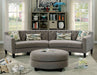 Create a luxurious and sophisticated living room with this uniquely shaped sectional . Curved for design and comfort, the sectional features a tufted back paired with sloped armrests, all for a modern appeal. Matching accent pillows, available in two different sizes, add a charming touch.