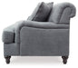 With its graceful curves and rich elements, this sofa in slate blue embraces a sense of tradition in a way that feels fresh and new. A favorite among romantics, the sofa’s Charles of London arms and rollback profile are beauty to behold. Crisp and clean 2-over-2 cushion styling and monochromatic throw pillows prove that less can be more.