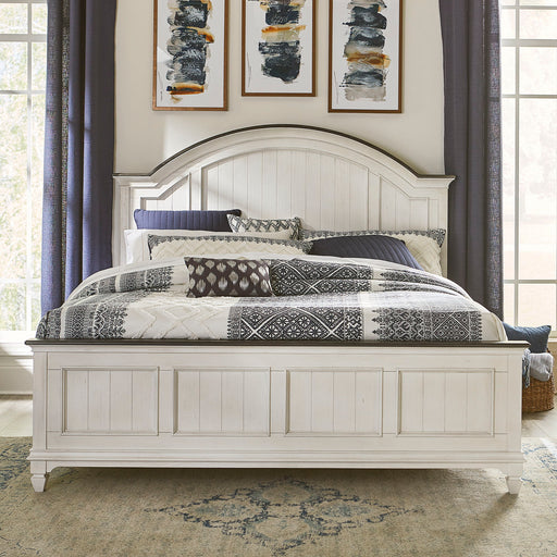 Liberty FurnitureIn stockBring beauty indoors with the Allyson Park king arched panel bed. Crafted of pine solids and veneers with cathedral white oak tops, this kit featur...
