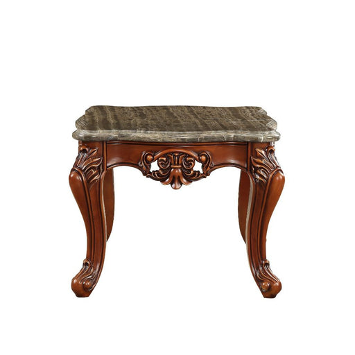 ACMEIn stockRectangular End Table • NO Storage • Marble Top • Wooden Frame with Raised Scrolled Trim and Floral Motifs (Vintage Hand-Brush Finish) • Queen Anne...