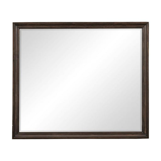 Fitting a classic yet modern bedroom suite, this charming mirror features an intricate profile with unique curves. Finished in a warm, inviting bro...