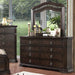 This stately bedroom dresser features a classic rich espresso finish, clipped corner and strong trim lines grounded them in sophisticate appeal. The deep wooden grain patterns on the drawer face combine with the antique pulls to exude elegance.