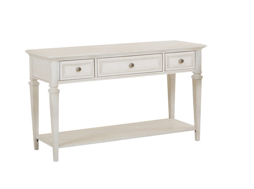 Elevate your space with the Morgan Creek sofa table. Crafted of poplar solids with pine and birch veneers, this piece features an antique white fin...
