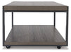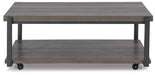 A cohesive, casual contemporary ensemble. This table set is equal parts sleek form and routine practicality. If you're hosting guests or need space to stretch out in a recliner, rolling casters on the coffee table clear up extra floor space in a snap. Each table is outfitted with a lower shelf for chic storage and displaying decor.