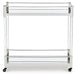 Reflect your love for contemporary style with this bar cart. With two shelves made with mirrored glass, it adds both light and a touch of glam to your space. A clear acrylic and chrome-tone frame is a modern take on understated elegance. And thanks to rolling casters, serving your guests has never been easier.