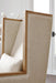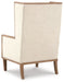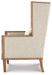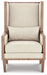 Make it cozy in the transitional way with this chair. Upholstered in beige linen-colored fabric with attached back and seat cushion, lumbar pillow and show wood frame in light brown finish, this seat welcomes comfort.
