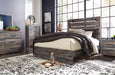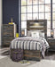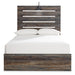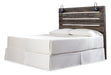 When merged in just the right way, rustic and industrial styles can make one happy marriage. Case in point: this queen panel bed. A refined take on barn board beauty, its complex, replicated wood grain showcases hints of burnt orange and teal tones for a sense of weatherworn authenticity. Love to read in bed? You’re sure to find the pair of retro-chic light sconces and USB plug-ins on the open-slat style headboard such a bright idea. Mattress and foundation/box spring available, sold separately.