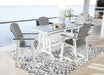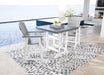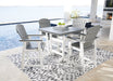 Set the table for a backyard or poolside gathering and serve up an extra helping of good times. Designed for easy-breezy living, this gorgeous gray and white outdoor dining set is made of extremely durable MEGA TUFF™ HDPE material to withstand harsh weather elements. Stainless steel hardware and aluminum supports provide extra strength.