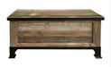 - Featruring solid pine construction, Top trim features hand-wrought iron in a streamlined styling. Legs and base also feature authentic wrought iron for authentic rustic look and added value.