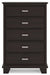 View full detailsFeast your eyes on this richly versatile chest of drawers. Its traditional-inspired dark brown finish effortlessly blends with contemporary bright ...