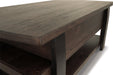 Form, function and a whole lot of style is what this occasional table set with lift top coffee table and end table is all about. The distressed bro...