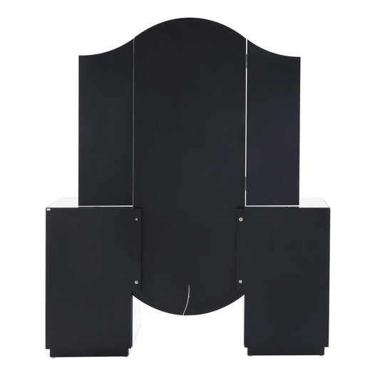 ACMEIn stockVanity Desk & Mirror • Storage Desk: 6 Drw (Recessed Front Panels) • Vanity Glass Top: 8mm Clear Tempered Glass • Tri-Fold Mirror with Arched T...