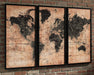 Continental divide. This 3-piece world map art work marks the spot for world-class style. Gallery wrapped canvases are punctuated with striking black frames, with mounted brackets for easy hanging.