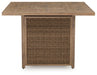A perfect balance of design and utility, this bar table with fire pit turns any outdoor living space into your own piece of paradise. Crafted with easy-care resin wicker over an aluminum frame with the look of wood, it's the epitome of California dreamin' style. The press of a button ignites a flickering flame that dances over a bed of glass beads. And with room for up to eight, it’s one highly accommodating table.