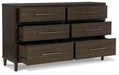 View full detailsFor fans of an uncomplicated mid-century modern vibe, this dresser and mirror set clearly steals the show. Its finish balances a rich, warm brown u...