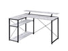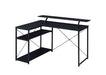 Tired of a messy desk with stacks of files and other documents? With a desktop shelf and two-tiered bottom shelf, the L-shaped desk fits corner perfectly to maximize your existing office space. The wooden desk is designed with a unique, spacious top, while the top and bottom shelves keep everything organized. The black-finished metal frame supports the desk, with '"X" shaped design for added style and security. Let the Drebo Desk creats a strong, efficient, motivational workplace for you.