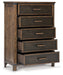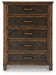 What a fresh interpretation of casual lifestyle design. Inspired by American craftsmanship, but with an elevated sensibility, this chest of drawers blends distinctive details such as metal corner accents and smooth-gliding drawers for an easy-living aesthetic. Those who appreciate the beauty of wood will be doubly impressed with the two-tone walnut and burnt umber finish that imparts an added level of refinement.