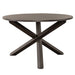 Design possibilities are endless with the Anglewood five-piece pedestal table set. Crafted of rubberwood solids with mindy veneers, this set features a dark umber brown finish and includes the pedestal table and four slat back upholstered side chairs. The table has a fixed round top that is anchored by a unique crisscross styled X base. The chairs have a padded upholstered seat in a harbor gray linen and feature tapered legs with nylon chair glides to protect your flooring. Anglewood incorporates design elements from a variety of centuries, which allows homeowners to feel comfortable and elegant at the same time.