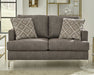 If modern subtlety is your style, settle into the heavenly texture of this sofa and loveseat package. The tremendously soft upholstery has a slight herringbone pattern that adds depth and richness to the java color. The metal accent legs elevate this set, as well as the style of it, and add a decidedly chic sense to your space.