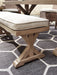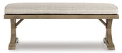 Sporting an easy-on-the-eyes look inspired by driftwood, this bench with cushion elevates the art of indoor-outdoor living. Beautiful and durable enough for indoor and outdoor use, this casually cool bench entices with striking X-leg farmhouse styling and a plush, removable cushion wrapped in high-performing Nuvella® fabric that’s a breeze to keep clean.