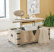 This coffee table reinvents yesterday’s style with casually modern flair. Its replicated natural oak grain is warm and inviting, while metal accents deliver a rustic, mixed-material edge. This laid-back luxe piece is further elevated by the lift-top design, providing surface space for daytime work or movie-night snacks.