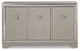 Reflect your love for contemporary style with this accent cabinet. It features a mirrored top and beveled mirror accents, adding both light and a touch of glam to your space. Decorated with faux crystal and chrome-tone pulls, the textured silvertone door fronts open to reveal adjustable shelving to meet all your storage needs.
