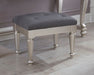 View full detailsHere's to vanity in the best sense of the word. This upholstered vanity stool allures with the glam befitting silver screen queens. Exquisite frame...