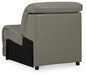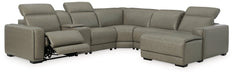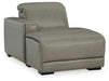 Truly putting high design into recline, this power reclining sectional with chaise with gray leather match upholstery proves that just because you’re a recliner doesn’t mean you have to look like one. Deceptively beautiful, its ultra clean-lined aesthetic is as cool and contemporary as they come. Low-profile back has a super swank look. When you need more support for your head and neck, the press of a button engages the Easy View™ power adjustable headrest, designed to let you lean back and still have a primo view of the TV. Ever-so-subtle curves and stunning stitching perfect the aesthetic.