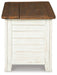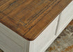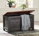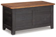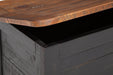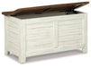 Storage solutions are made simple with this hinged top storage trunk. With a distressed brown and white finish, the piece oozes casual glam. A distressed planked effect on the front and sides brings subtle texture that gives the trunk a little extra flair.