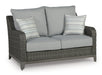 Add a distinguished touch of gray to your outdoor living space with this seating package. It's made with resin wicker over an aluminum frame for a relaxed look that provides seasons of enjoyment. Rest assured, the thick seat and back cushions are wrapped in Nuvella® high-performance fabric that’s fade-resistant, stain-resistant and a breeze to clean.