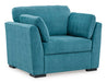 You want your home to reflect your modern, trendy eye for design. This oversized chair is here to help. Bold, bright and beautiful, it adds a fashion-forward pop of color to your living room. Velvet-like upholstery and matching bolster pillows keep comfort at top of mind, whether you're lounging around or entertaining guests. How’s that for fresh style and functionality?