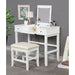 The best way to maximize a room is double use furniture. This vanity table functions as a workspace and a place to get ready for the. When not in use the mirror converts into a table top, but easily lifts up to reveal storage space and a drop down ledge for makeup and accessories.