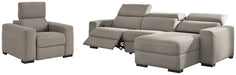 View full detailsSuper sleek and streamlined, this power reclining upholstery package in taupe gray with high-contrast jumbo stitching might just be our best-kept s...