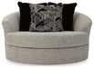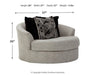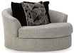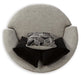 As much as you love clean-lined, modern furniture, you want to keep the vibe relaxed and comfortable. Rest assured, this oversized round swivel chair has that look and feel mastered. Perfect for fashion-forward family rooms, where everyone is welcome to kick back, this designer swivel chair will win everyone over with its head-turning flair. Richly textured, with specks of black and white peeking through, the chair’s storm gray upholstery is chic and sophisticated.