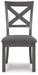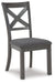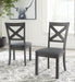 View full detailsGoing gray in the best possible way. This upholstered dining chair wows with an utterly on-trend smoky gray finish and X-back styling. Its softly c...