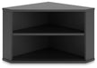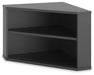 Stunningly streamlined. This home office corner bookcase provides a polished, practical solution for small spaces. Its sleek black finish pairs with a variety of styles, while the two open shelves offer convenient space to store and display. Simply slip this clean-lined piece into the corner of your choosing to help craft a versatile workstation.