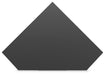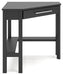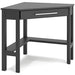 Stunningly streamlined. This home office corner desk provides a polished, practical solution for small spaces. Its sleek black finish pairs with a variety of styles, while the center drawer offers convenient storage for essentials. Simply slip this clean-lined piece into the corner of your choosing for a spot to study or work from home.