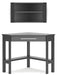 Stunningly streamlined. This home office corner desk and bookcase provide a polished, practical solution for small spaces. Its sleek black finish pairs with a variety of styles, while the two open shelves and center desk drawer offer convenient space to store and display. Simply slip this clean-lined duo into the corner of your choosing for a versatile spot to study or work from home.